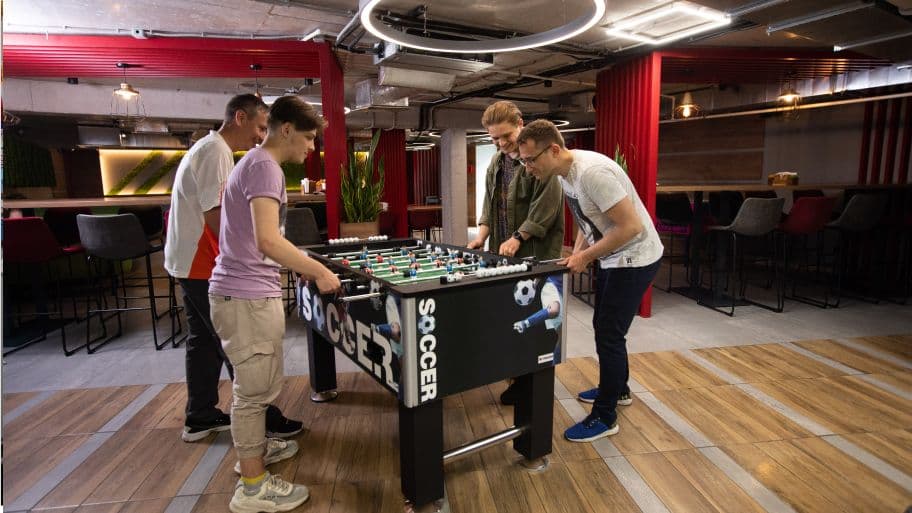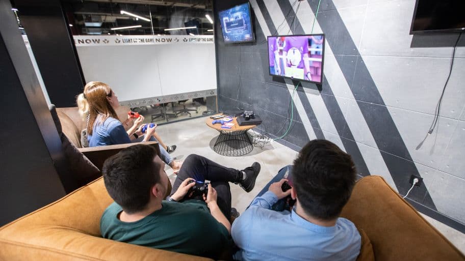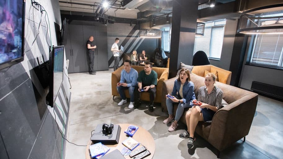 У зоні з величезною плазмою люди грають на приставках Sony PlayStation, на автоматах у морський бій, настільний футбол, теніс та баскетбол, або дивляться матчі. Завдяки подібному дозвіллю в розпал робочого дня активізуються нейромедіатори, що сприяють підвищенню працездатності – те, що лікар прописав.